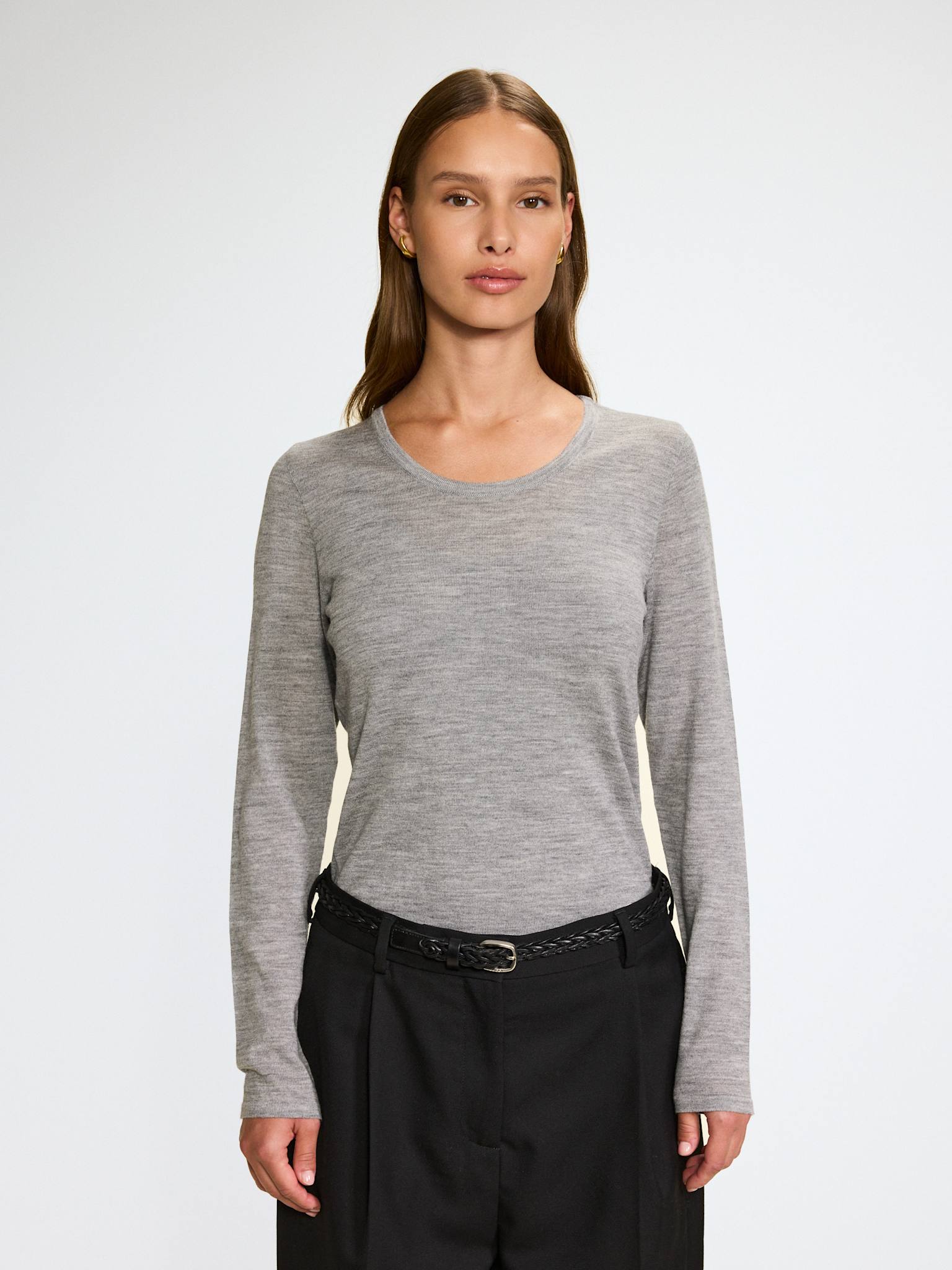 100% Merino Wool long sleeve. Slim fit with a sensual (some say) neckline.